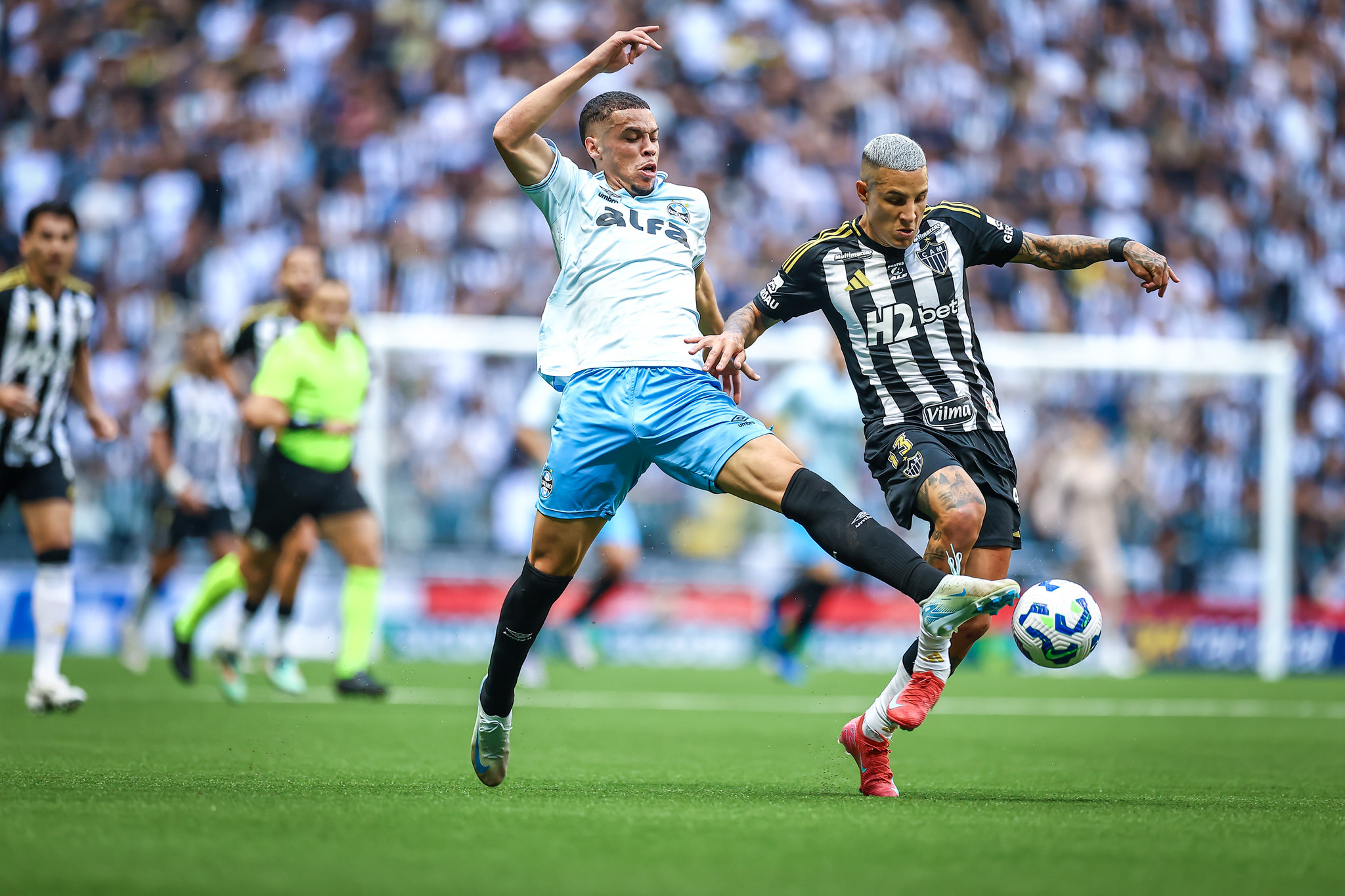 A partida, que já era intensa, ganhou contornos ainda mais dramáticos com as expulsões. Pouco depois do gol da virada, o Grêmio perdeu Carlos Vinícius, que recebeu o cartão vermelho por atingir Iván Román fora da disputa de bola. A superioridade numérica do Atlético-MG, contudo, durou menos de 20 minutos. Aos 31, Cuello cometeu uma entrada dura, pisando no adversário, e, após revisão do VAR, teve seu cartão amarelo convertido em vermelho.