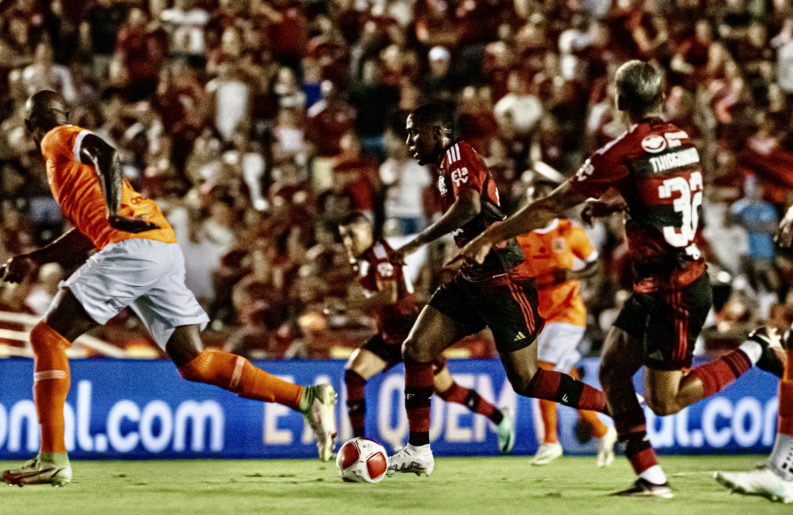 Melhor na partida naquele momento, o Mengão chegou ao empate aos 25’. Lorran tocou para Thiaguinho, que driblou a marcação e bateu colocado no canto. A bola bateu na trave antes de entrar. Um belo gol do jovem atacante rubro-negro: 1 a 1.